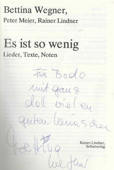 Traurig, nicht wahr ? Bettina Wegeners Lieder sind alle traurig. Sie handeln von Abschieden und Verlusten. Sicher auch vom Widerstehen. Und vom Geschlagen Werden dafür. Vom Verlieren ?