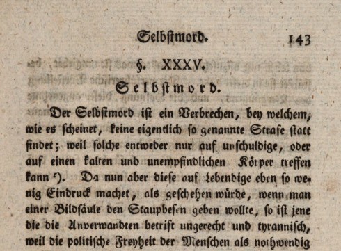 Doch, Selbstmord war trotz allem bis in das vorige Jahrhundert hinein strafbar in einigen europäischen Ländern. Und „Beihilfe zum Selbstmord“, das ist so eine „Grauzone“, über die selbst die „Welt“ sich nicht einig ist.